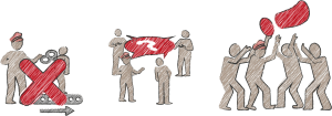 Nicht selten agieren hier Organisationen immer noch im Stil des eigentlich ausgedienten Taylorismus, in dem der Kopf (die Führungskräfte bzw. einzelne ausgewählte Arbeitsgruppen) denkt und die Ergebnisse dann in Regeln gießt, die die Mitarbeiter*innen „an der Basis“ umsetzen sollen. Diese theoretisch effektive Arbeitsteilung führt in der Praxis häufig zu unendlich vielen Reibungsverlusten: Mitarbeiter*innen akzeptieren die Regeln nicht, die Regeln passen nicht zu den Problemen des Alltags, wenn die Regeln fertig sind, besteht das Problem schon gar nicht mehr usw.